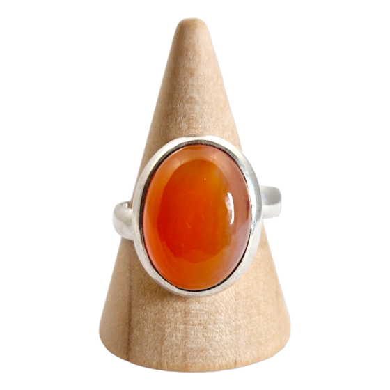 Bague cabochon serti épais, clos - Qualité AA Déclinaisons : Amazonite, œil de tigre, labradorite violette, quartz rose,...