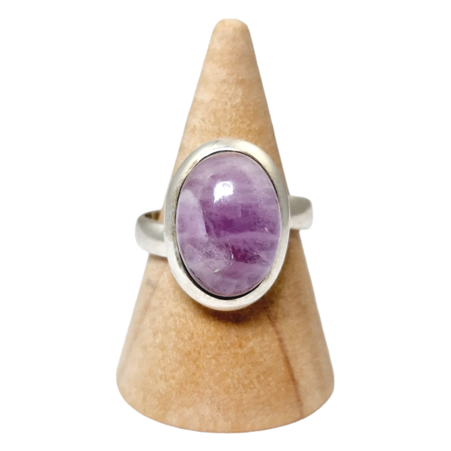 Bague cabochon serti épais, clos - Qualité AA Déclinaisons : Amazonite, œil de tigre, labradorite violette, quartz rose,...