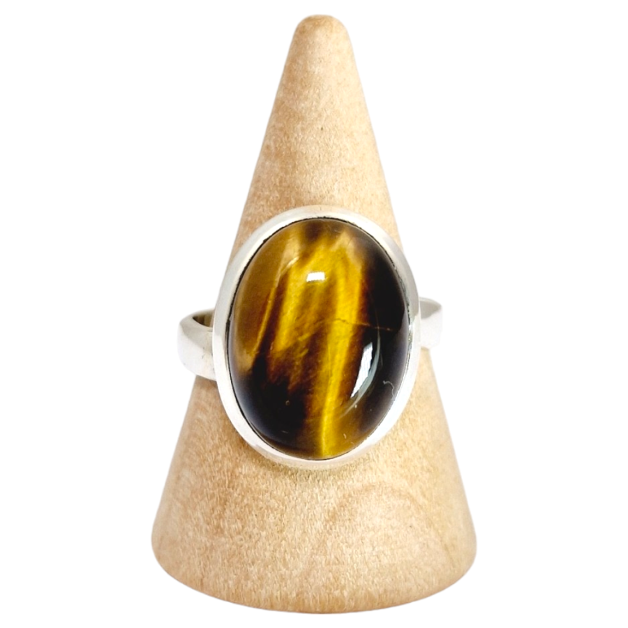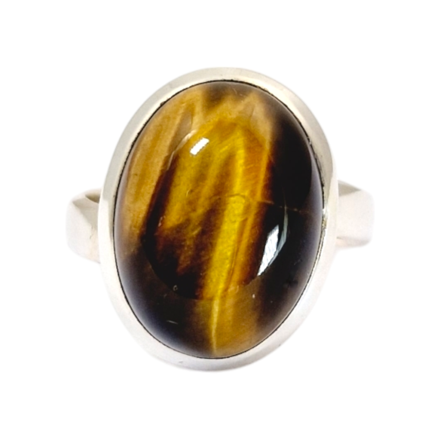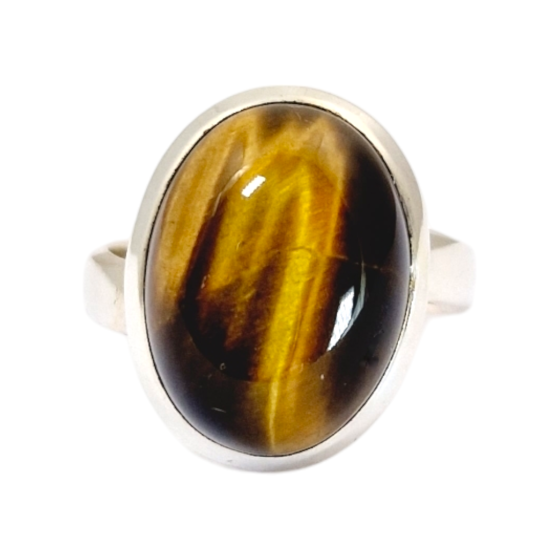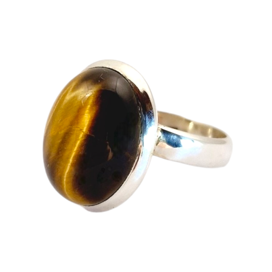 Bague cabochon serti épais, clos - Qualité AA Déclinaisons : Amazonite, œil de tigre, labradorite violette, quartz rose,...