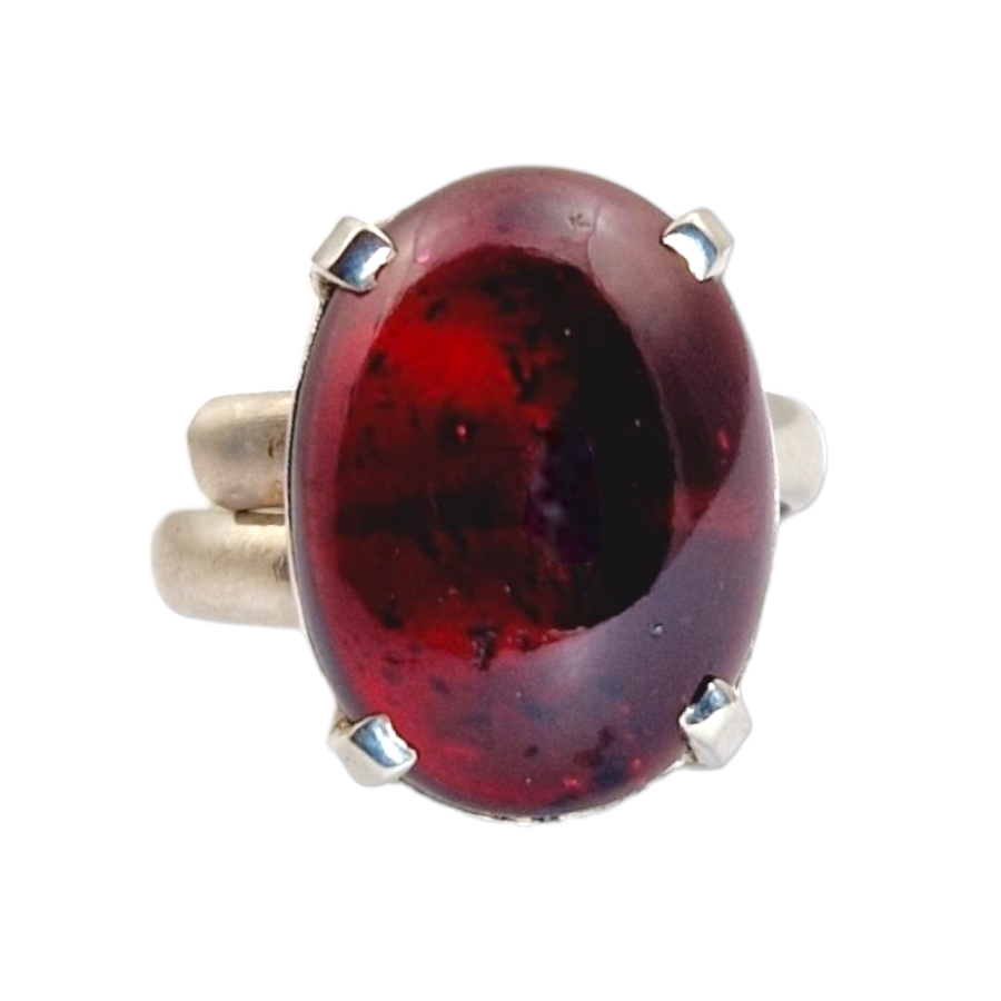 Bague cabochon facetté serti griffe - Qualité AA Déclinaisons : Quartz rose, grenat, labradorite blanche, améthyste, kunzite...