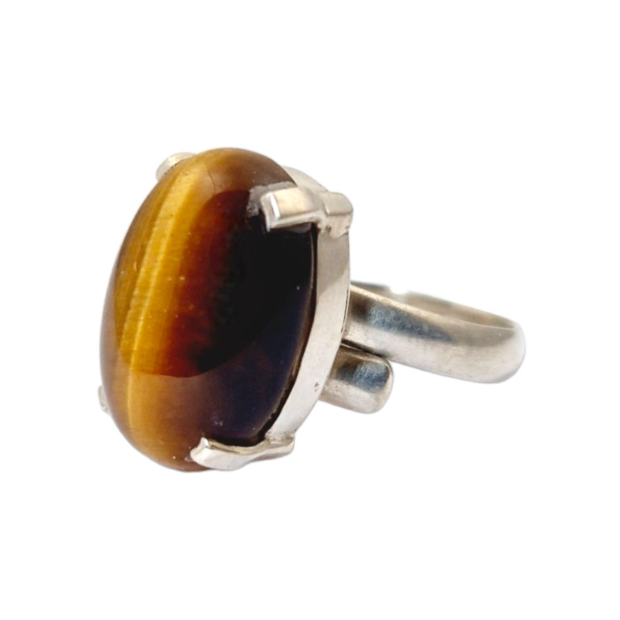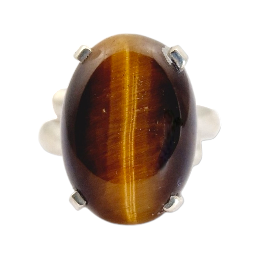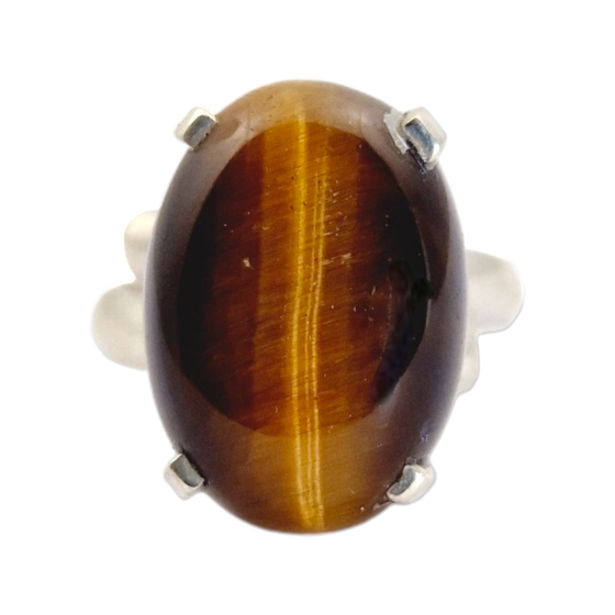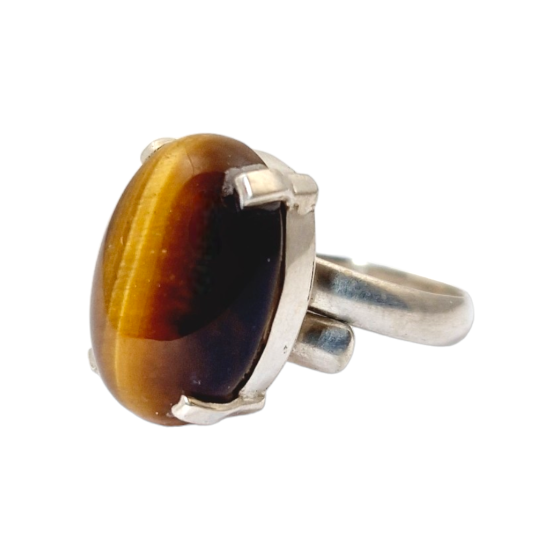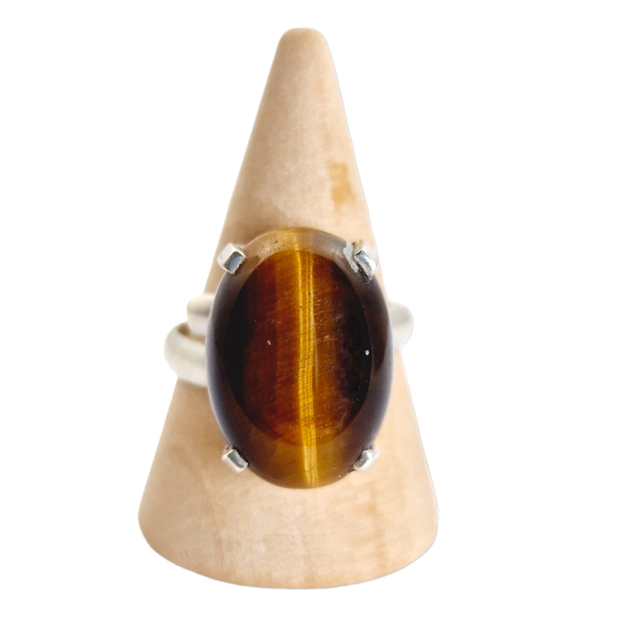 Bague cabochon serti épais, clos - Qualité AA Déclinaisons : Amazonite, œil de tigre, labradorite violette, quartz rose,...