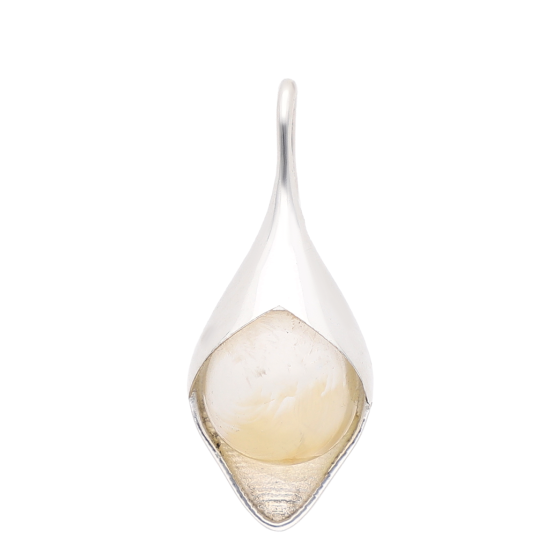 Pendentif raie en argent 925 - serti d'un cabochon de pierre fine - qualité A Variété de pierre au choix : Amazonite,...
