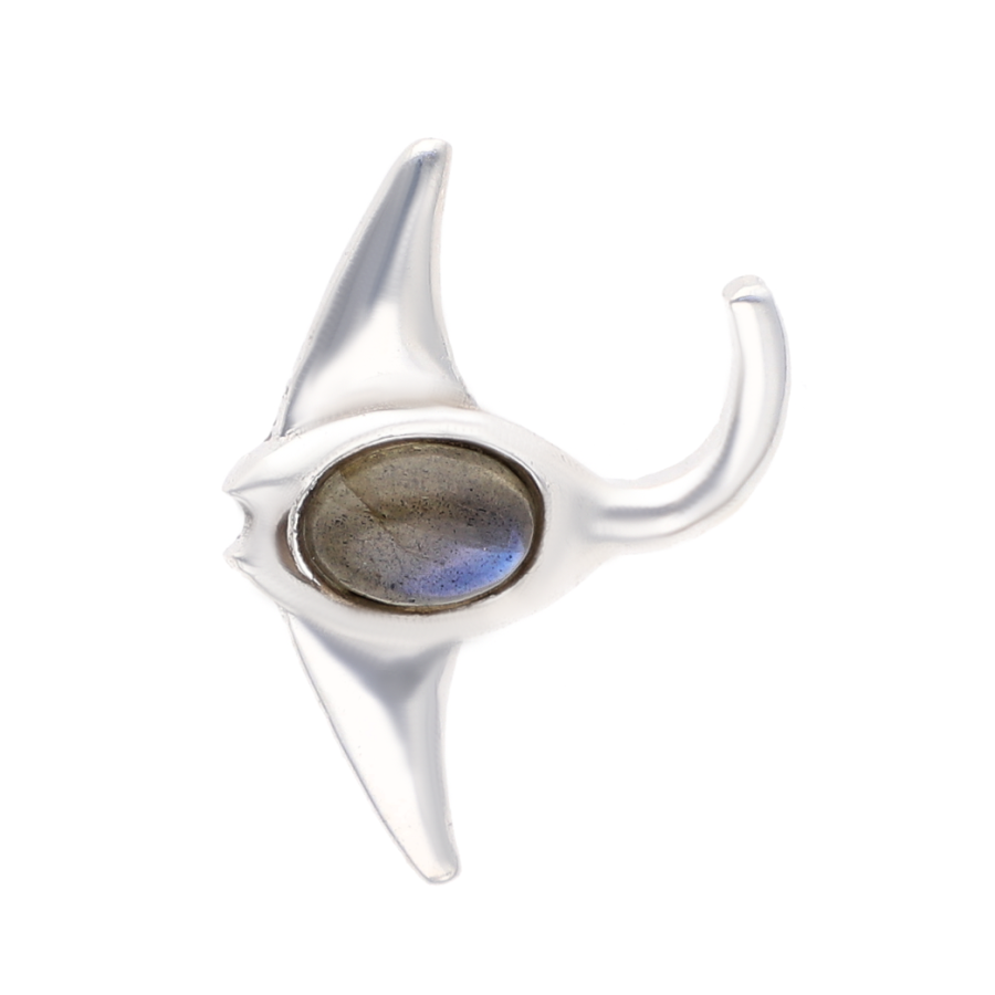 Pendentif raie en argent 925 - serti d'un cabochon de pierre fine - qualité A