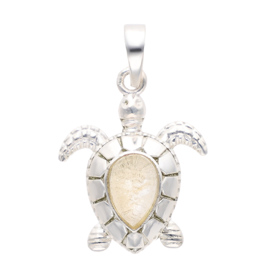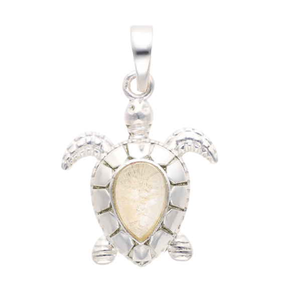 Pendentif tortue en argent 925 - serti d'un cabochon de pierre fine - qualité A