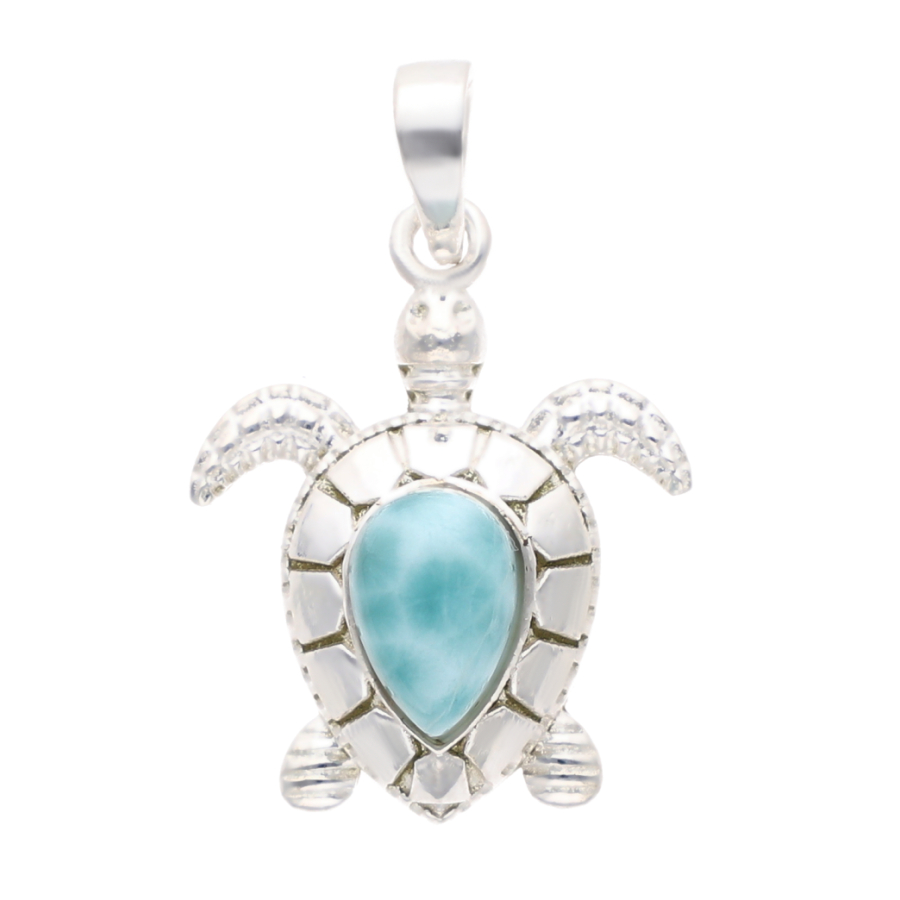 Pendentif tortue en argent 925 - serti d'un cabochon de pierre fine - qualité A