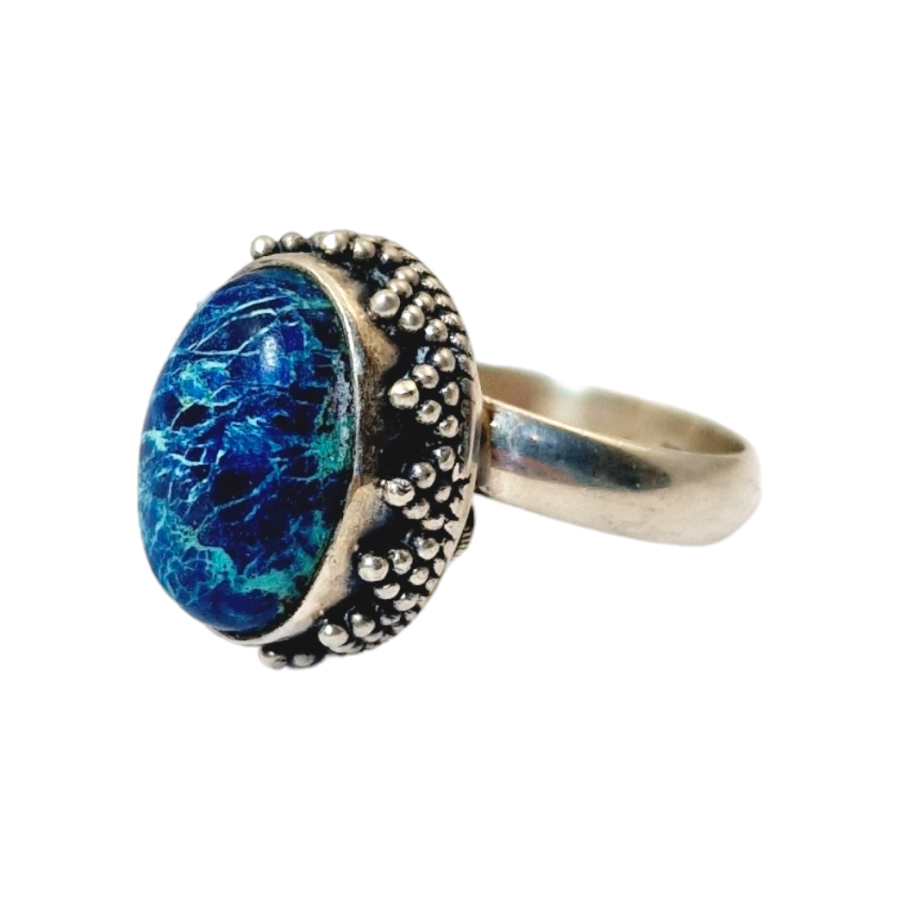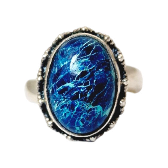 Bague chevalière en lapis lazuli - Qualité A Argent 925 - 6,8 g Fabrication de la bague réalisée en Inde - Jaipur Taille: 62 -...