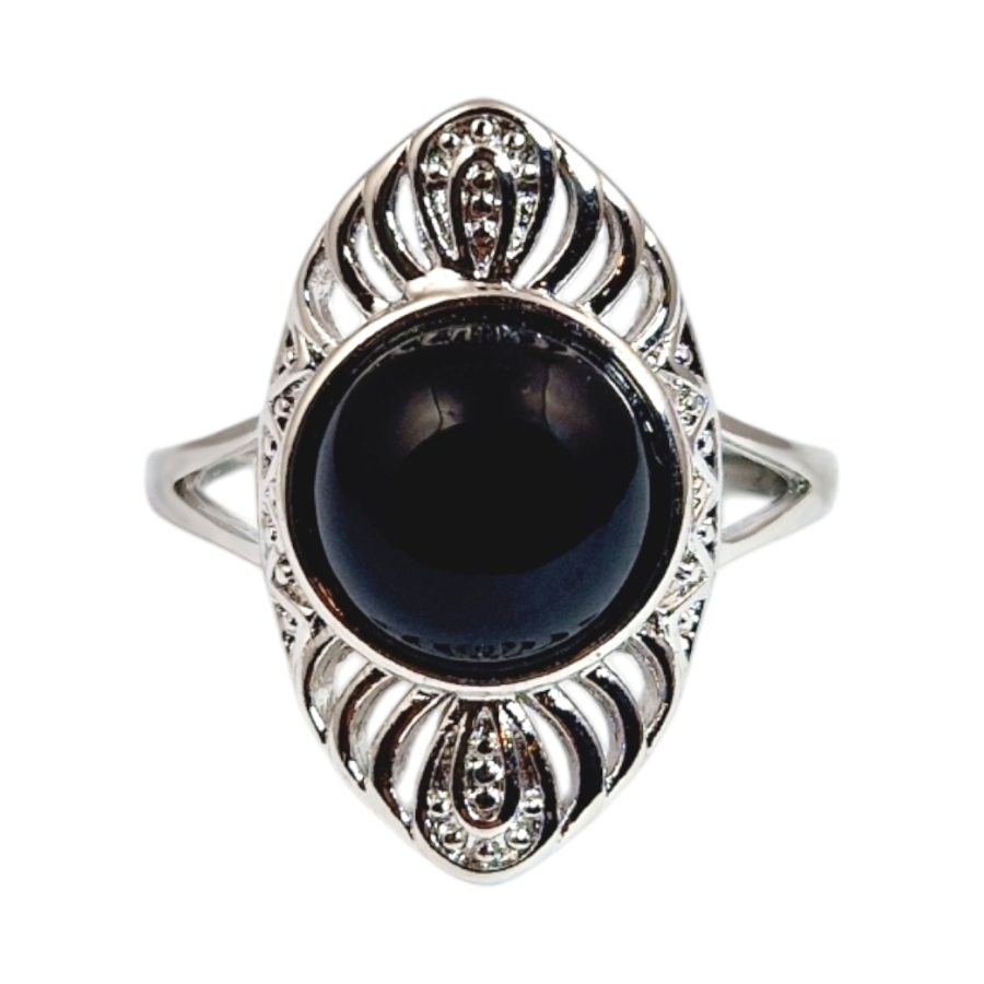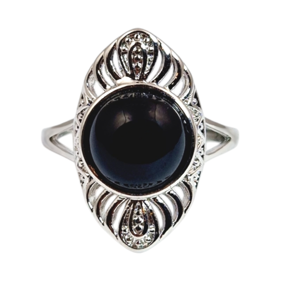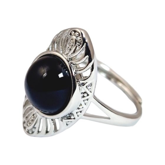 Bague chevalière en obsidienne noire - Qualité A Argent 925 - 5,4 g Fabrication de la bague réalisée en Inde - Jaipur...