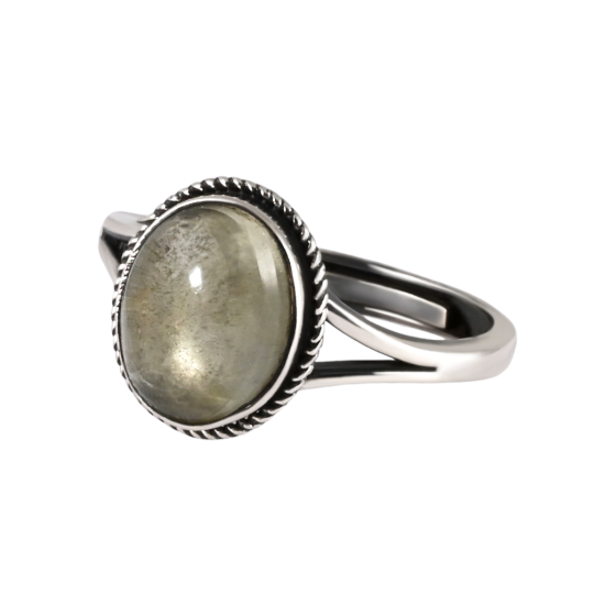 Bague en pierre de Soleil Cuivre chromé Taille réglable - Qualité A Sertissage griffe