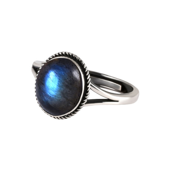 Bague Clara en argent 925 - 2,2 g - Qualité AA Déclinaisons : œil de tigre, amazonite, citrine, labradorite, labradorite...