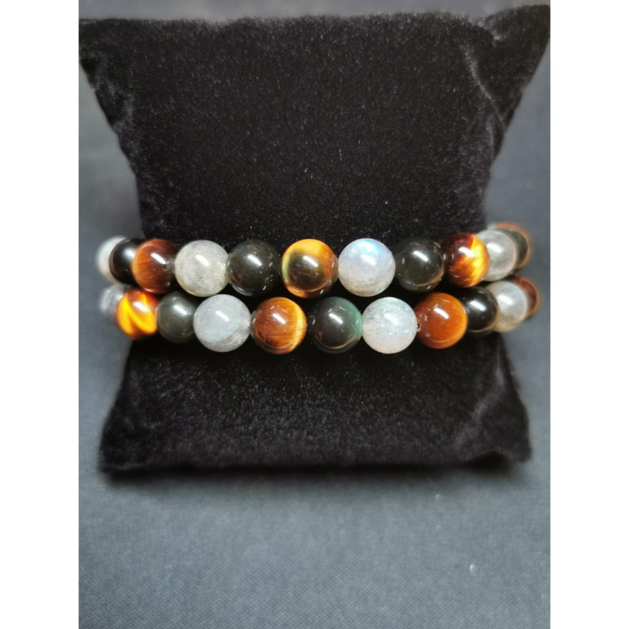 3 oeils - Bracelet de perles Origine Afrique du sud - Qualité AA Diamètre de bracelet 18 cm - Fil élastique Bracelet triple...