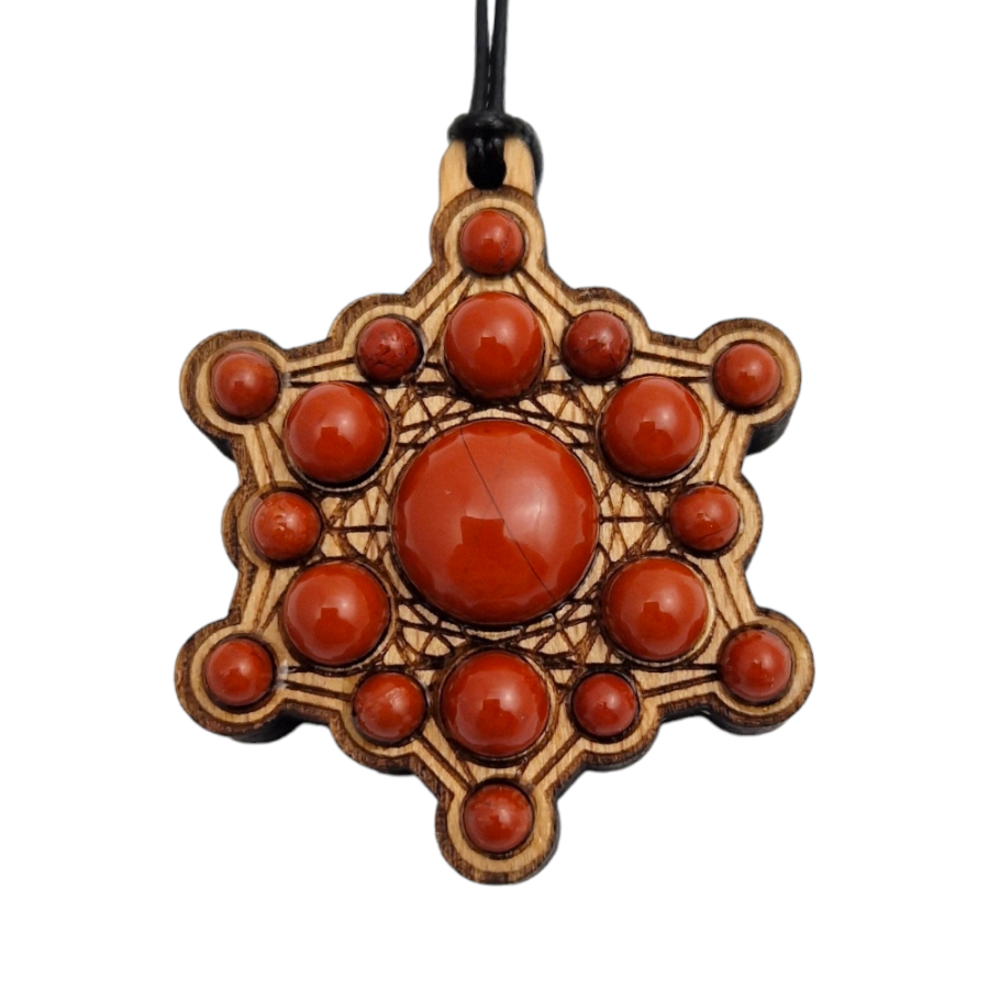 Pendentif en bois style Namkha tibétain, avec un cordon de 90 cm ajustable Déclinaisons : Jaspe rouge, labradorite, œil de...