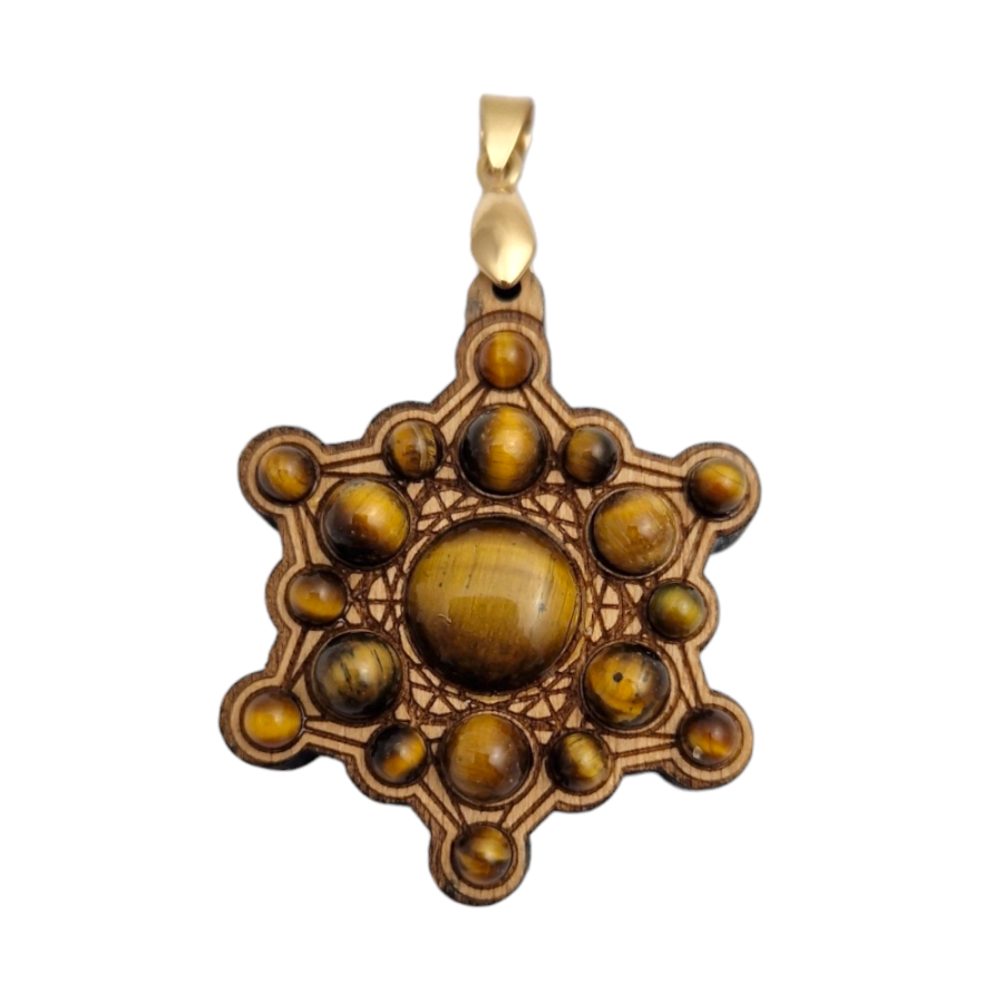 Pendentif rond, fleur de vie - Qualité A Déclinaisons : améthyste, cristal de roche, aventurine, oeil de tigre, quartz rose...