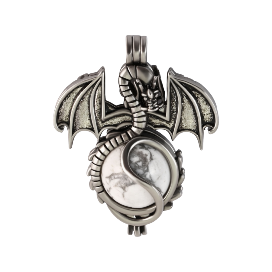 Pendentif dent de Dragon en acier inoxydable - Qualité A Déclinaisons : aventurine, améthyste, cristal de roche, howlite, œil...