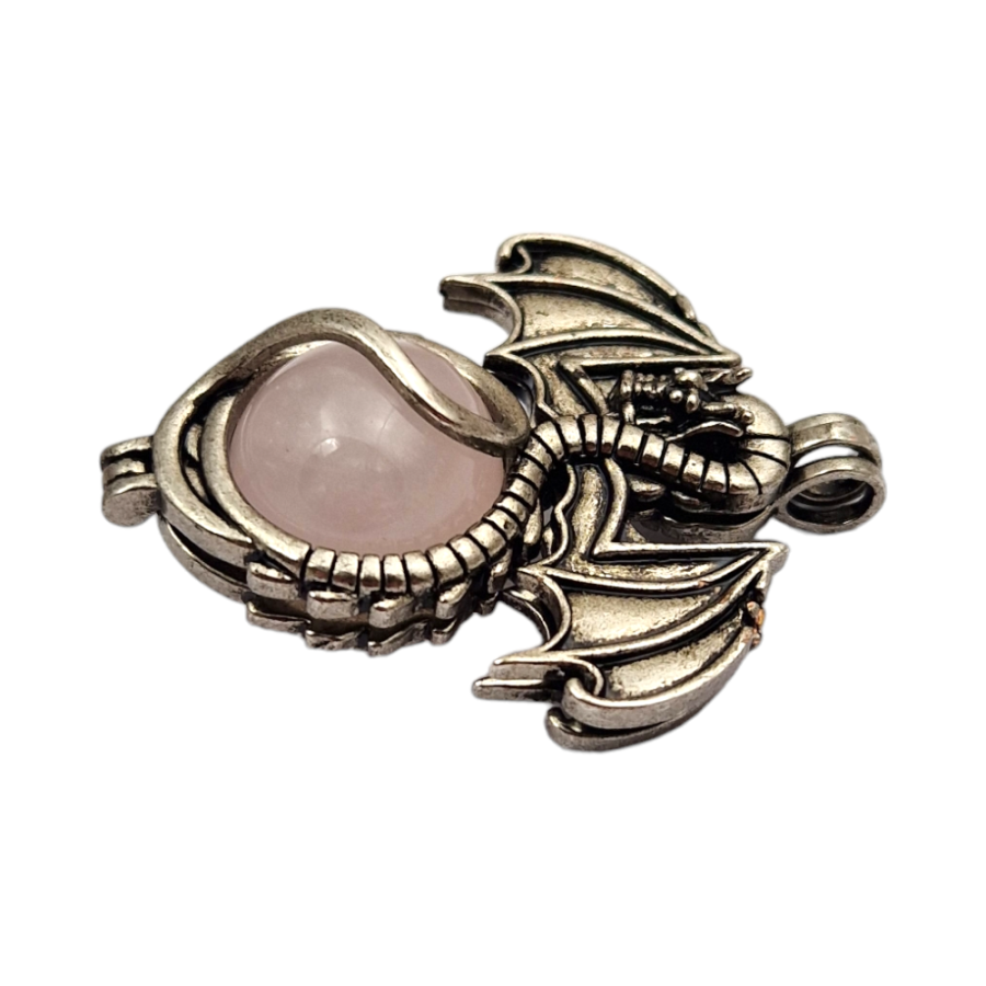 Pendentif dent de Dragon en acier inoxydable - Qualité A Déclinaisons : aventurine, améthyste, cristal de roche, howlite, œil...