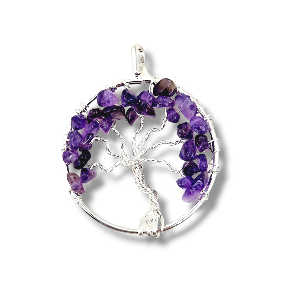 Améthyste - Pendentif serti griffe, métal. Origine Brésil - Qualité A Taille : 1 à 2,5 cm