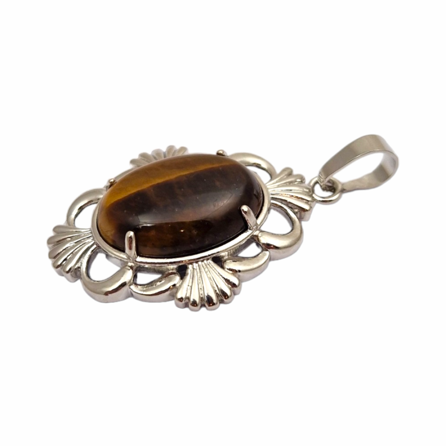 Pendentif Sphère de Dragon en acier inoxydable. Déclinaisons : Améthyste, cristal de roche, œil de tigre, obsidienne noire,...