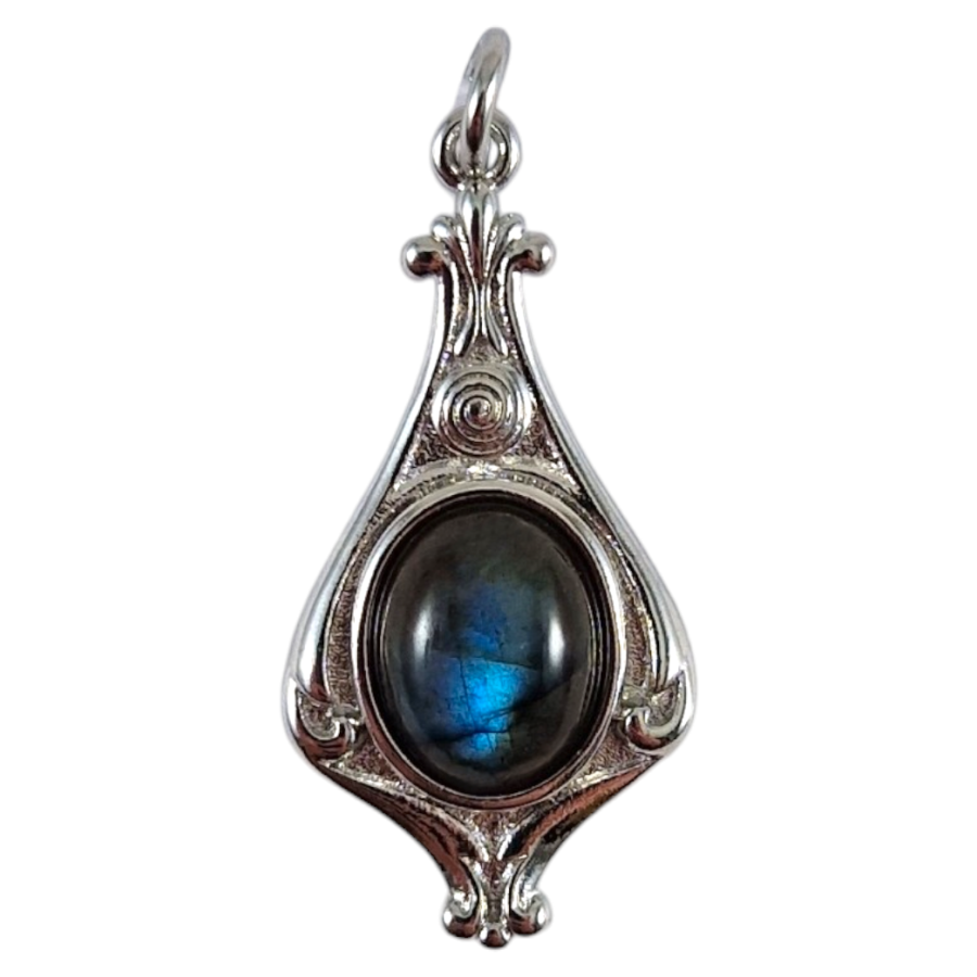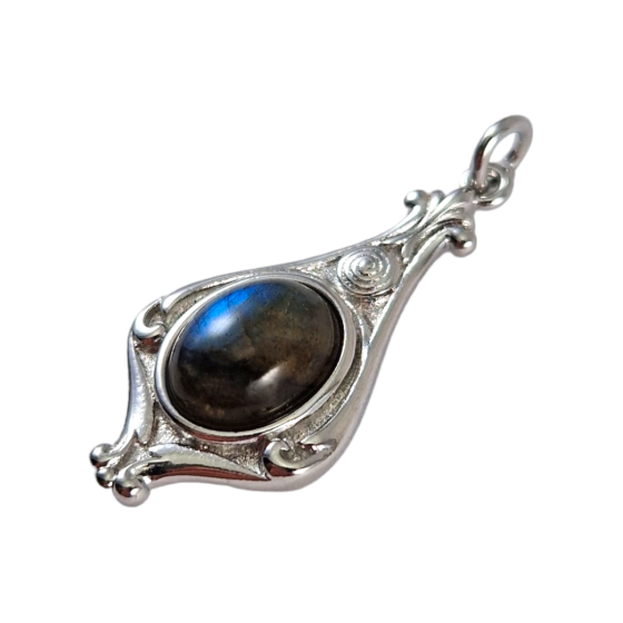 Pendentif en argent 925 serti d'un cabochon de pierre fine Variété de pierre au choix de qualité A Fabrication du bijou...