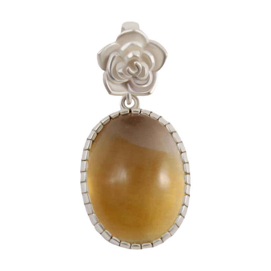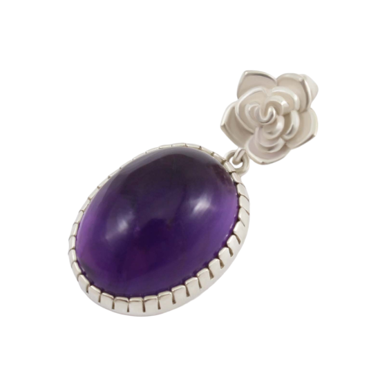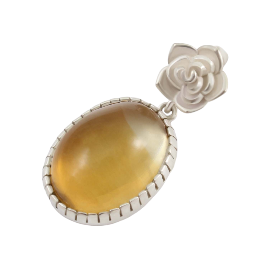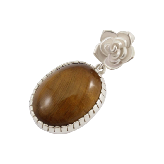 Pendentif en argent 925 représentant un soleil serti d'un cabochon de pierre fine Variété de pierre au choix de qualité AA...