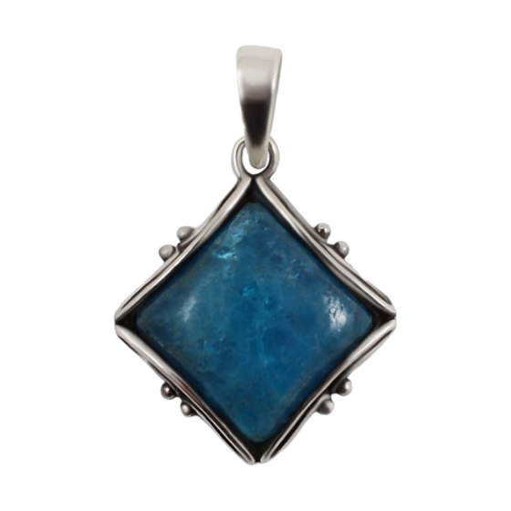 Pendentif en Aragonite Bleu Pierre de qualité A - Origine : Afghanistan Monture et bélière en argent 925 Dimensions : 4 x 1 cm