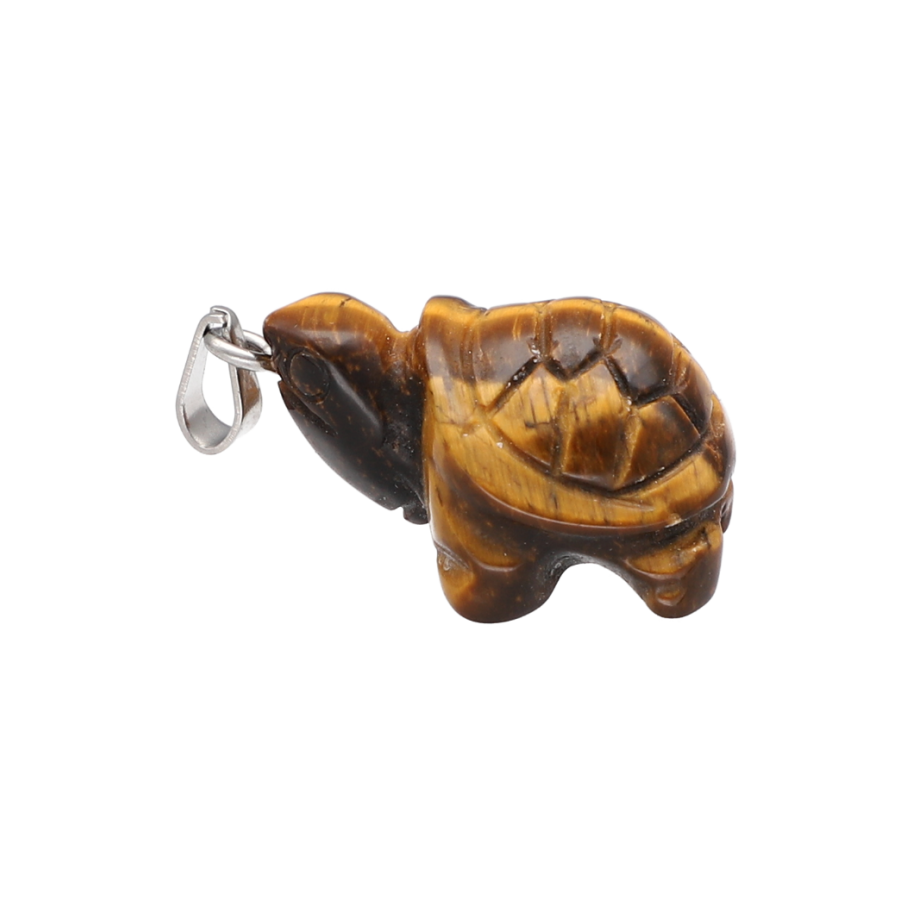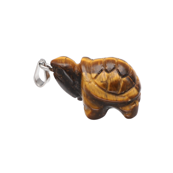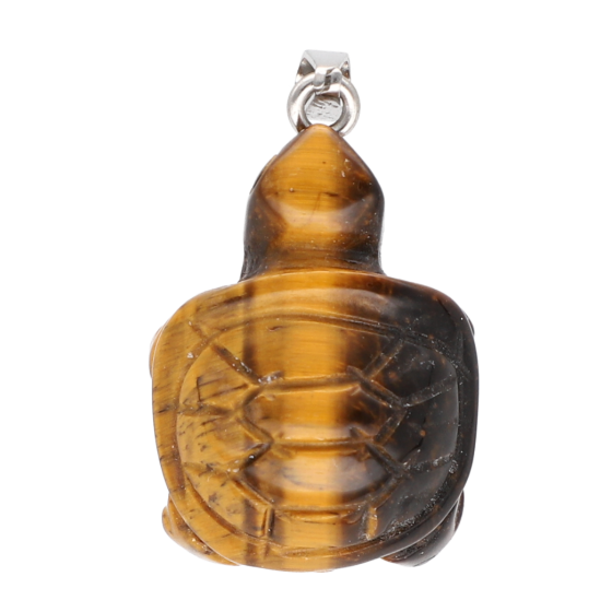 Pendentif tortue, percé en travers au niveau de la tête pour le passage d'un cordon. Obsidienne avec incrustation d'aventurine,...